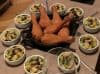Die Mini Zucchini in feine Scheiben hobeln. Die Zucchini-Scheiben 30 Sekunden in Salzwasser blanchieren und in Eiswasser abschrecken.